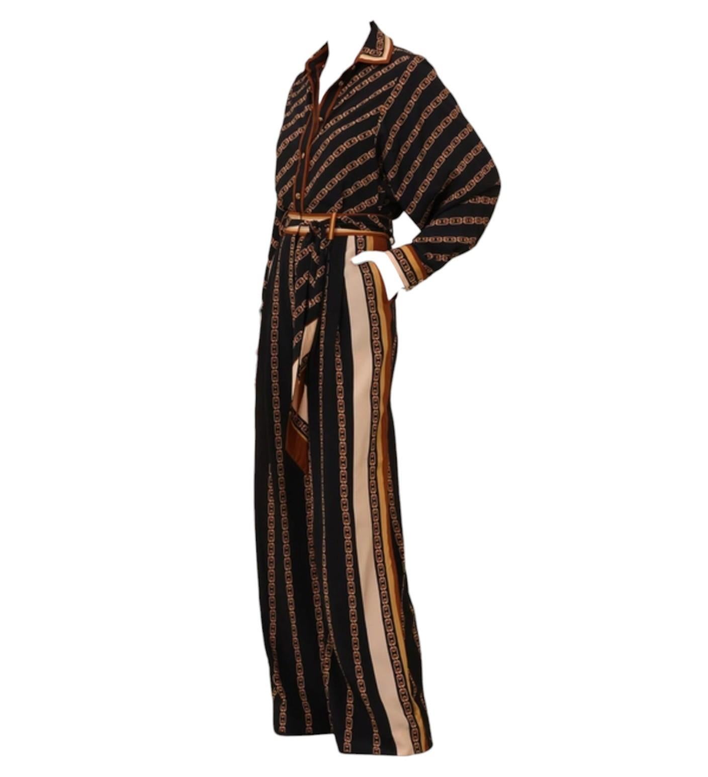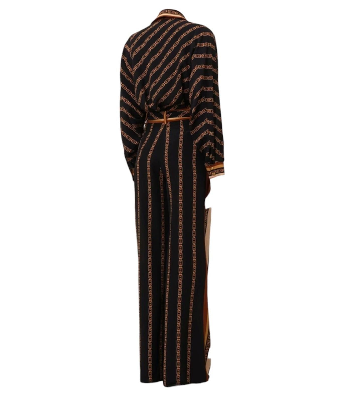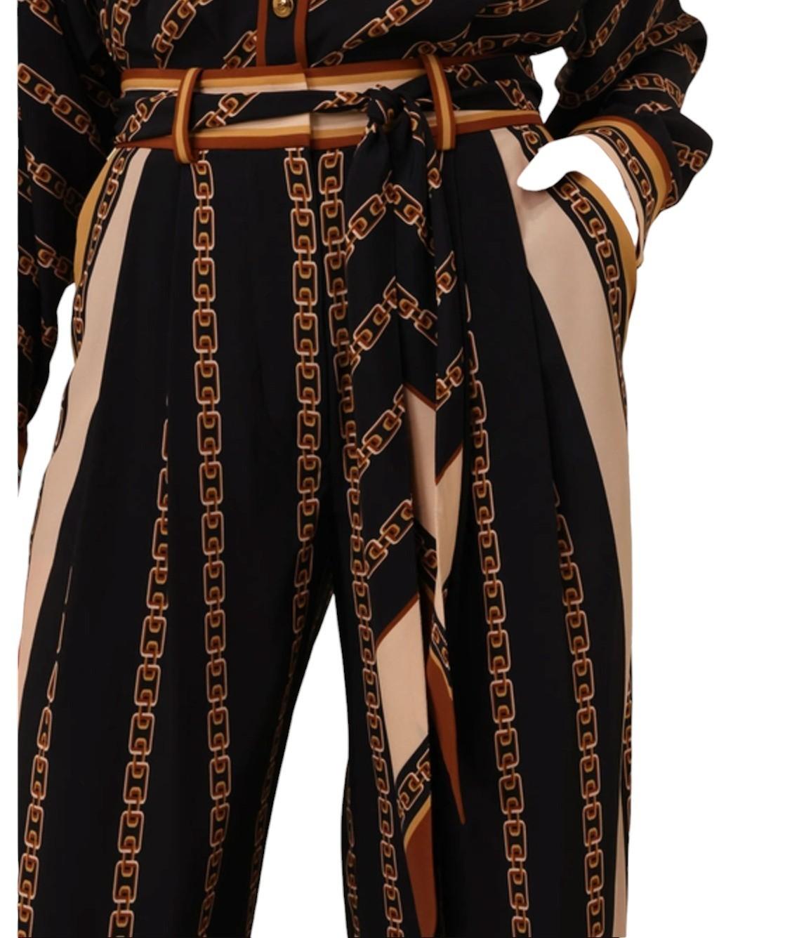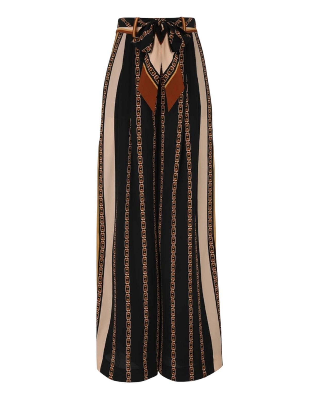 Zimmermann Wide Leg Pant | Black Chain Print, silk, Scarf Belt, High Waisted,